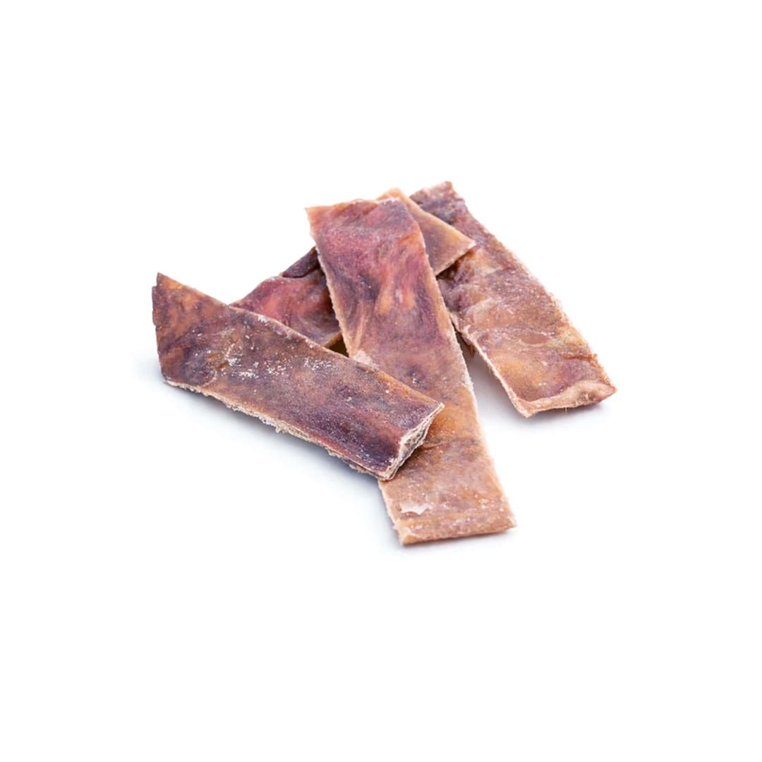 La sua caratteristica distintiva è la consistenza, che rende il momento dello snack più coinvolgente e appagante. Per questo la pelle di manzo si presta particolarmente bene a chi cerca uno snack da masticazione da offrire come premio o come piccola gratificazione quotidiana.